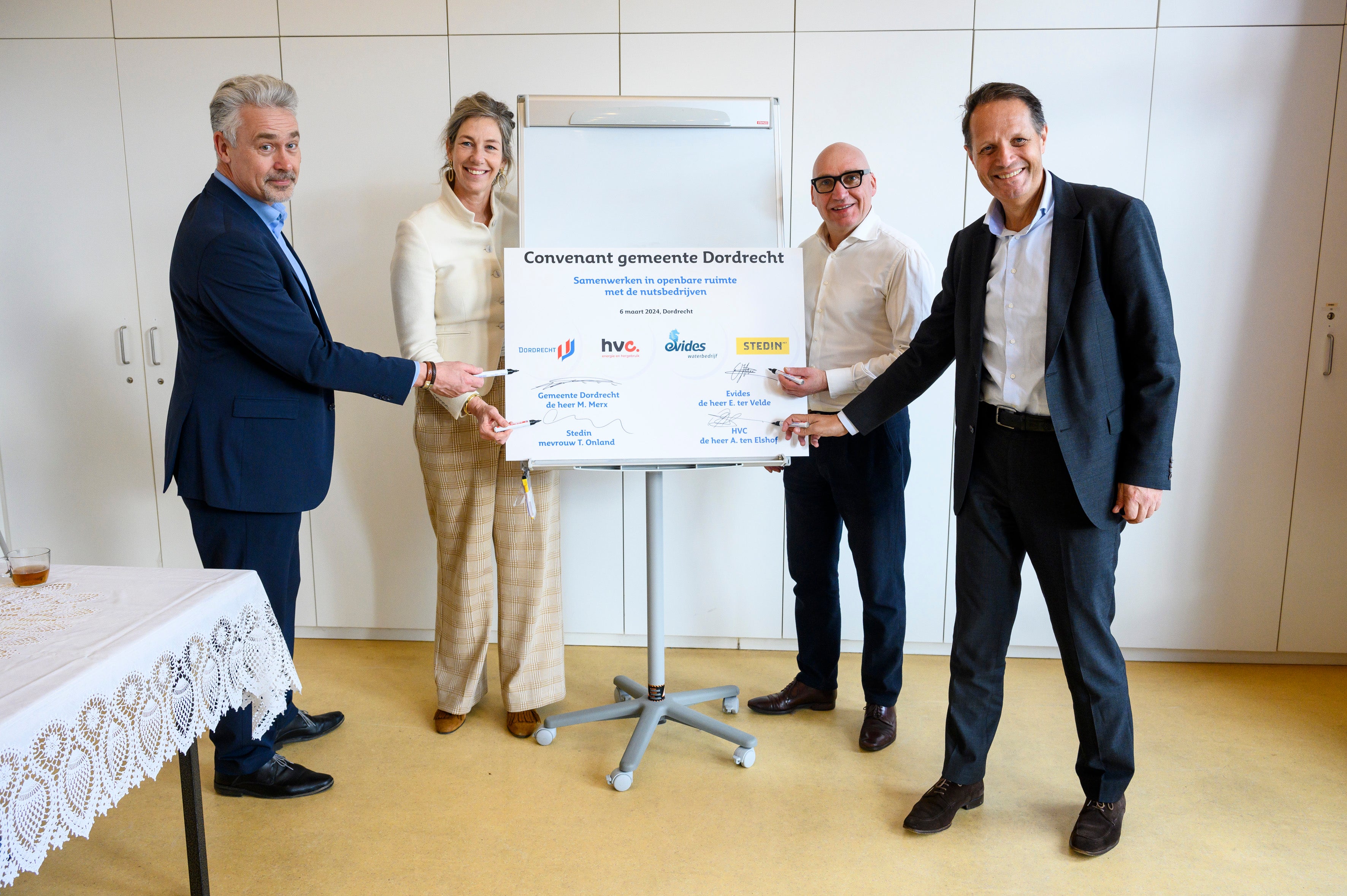Straten hoeven nog maar één keer open voor werkzaamheden. Dat is het doel van de afspraken die de gemeente Dordrecht, Evides, Stedin en HVC Warmte met elkaar hebben gemaakt.