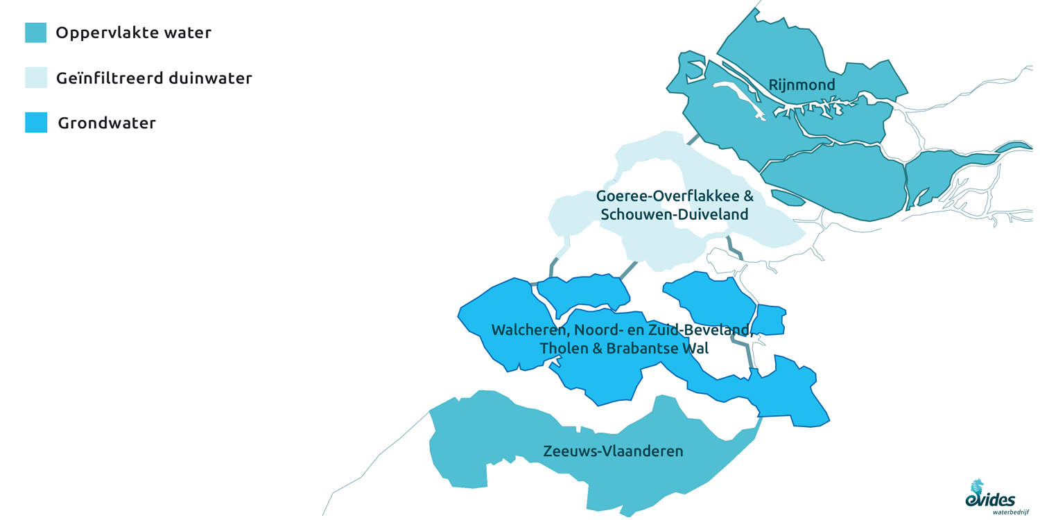 Evides maakt drinkwater uit verschillende bronnen. We gebruiken oppervlaktewater, geïnfiltreerd duinwater en grondwater. Met dit artikel willen we onze klanten informeren over onze bronnen en hoe we drinkwater maken. In elke regio binnen ons leveringsgebied gebruiken we andere bronnen. Door te weten waar uw water vandaan komt, wordt duidelijk hoeveel zorg en stappen we nemen om onze klanten te voorzien van veilig en betrouwbaar drinkwater.